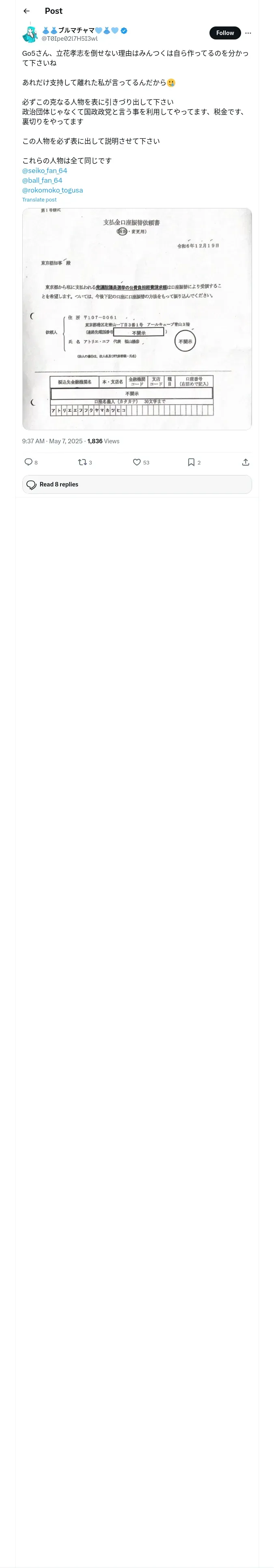 取得元URL: https://x.com:443/T0Ipe02l7H5I3wl/status/1919914394693365901