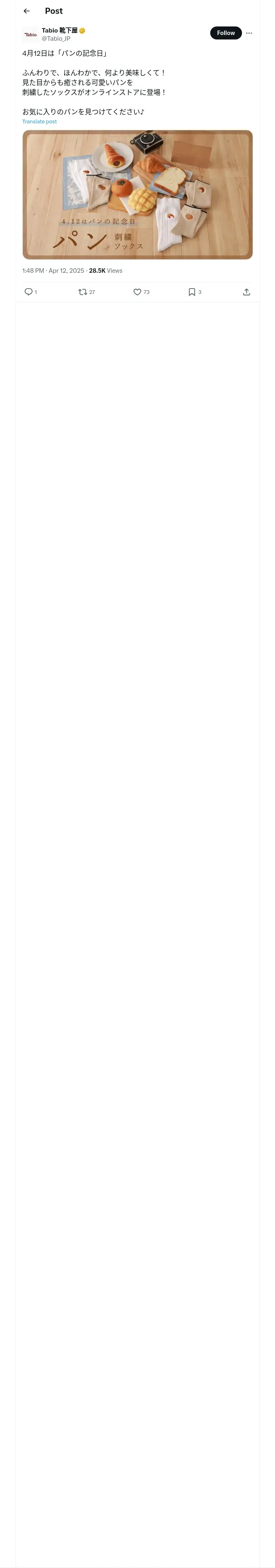 取得元URL: https://x.com:443/Tabio_JP/status/1910917922773520472