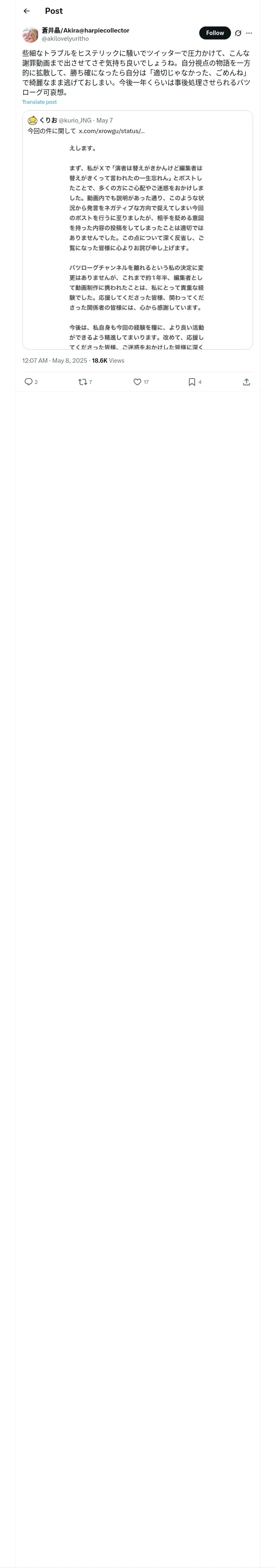 取得元URL: https://x.com:443/akilovelyuritho/status/1920133353094713685