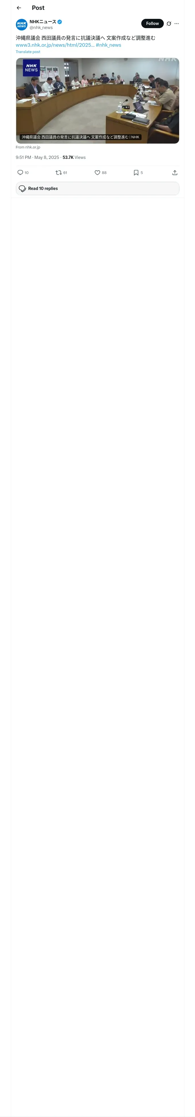 取得元URL: https://x.com:443/nhk_news/status/1920461446502363572