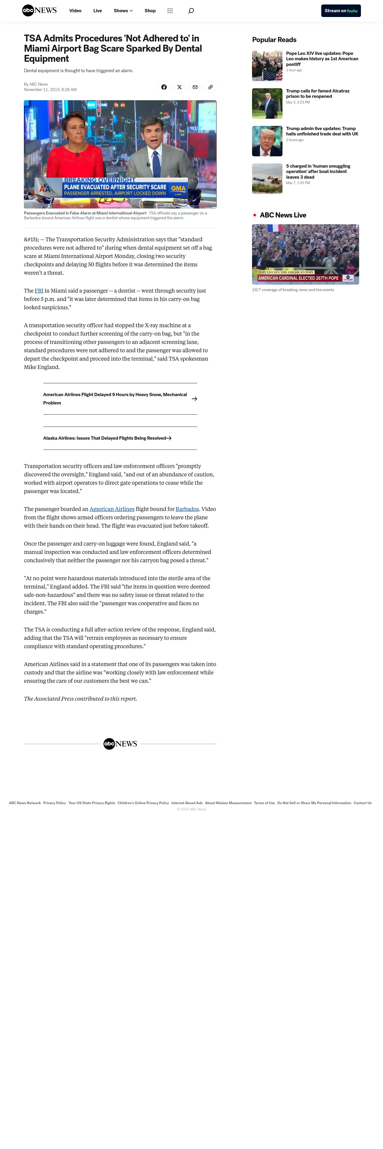 https://abcnews.go.com:443/US/50-flights-delayed-miami-suspicious-bag/story?id=35095114