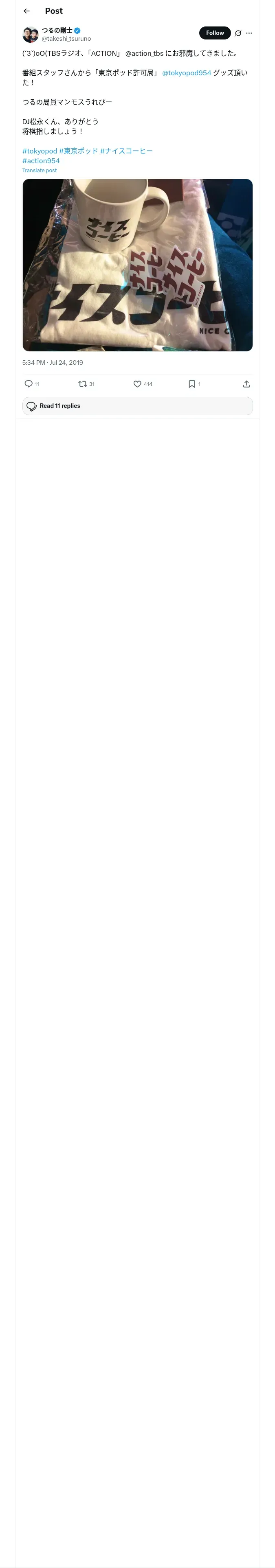 取得元URL: https://x.com:443/takeshi_tsuruno/status/1153946522502909952