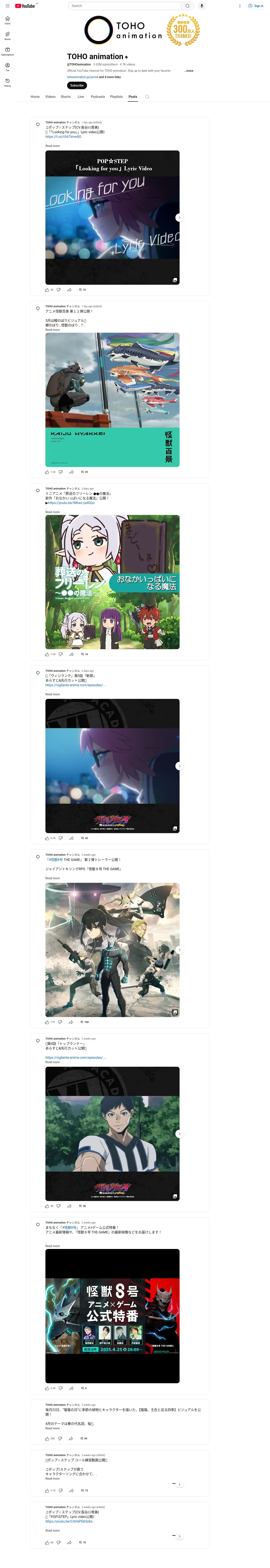 取得元URL: https://www.youtube.com:443/@TOHOanimation/community