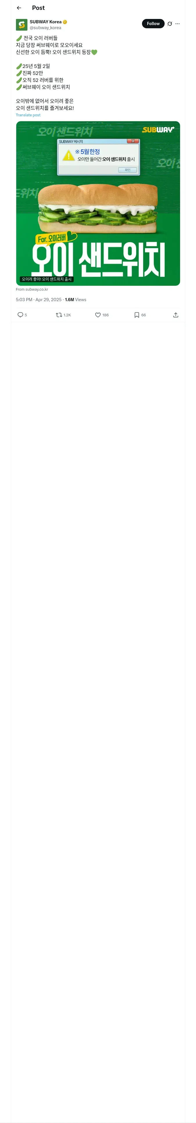 https://x.com:443/subway_korea/status/1917127534157717859