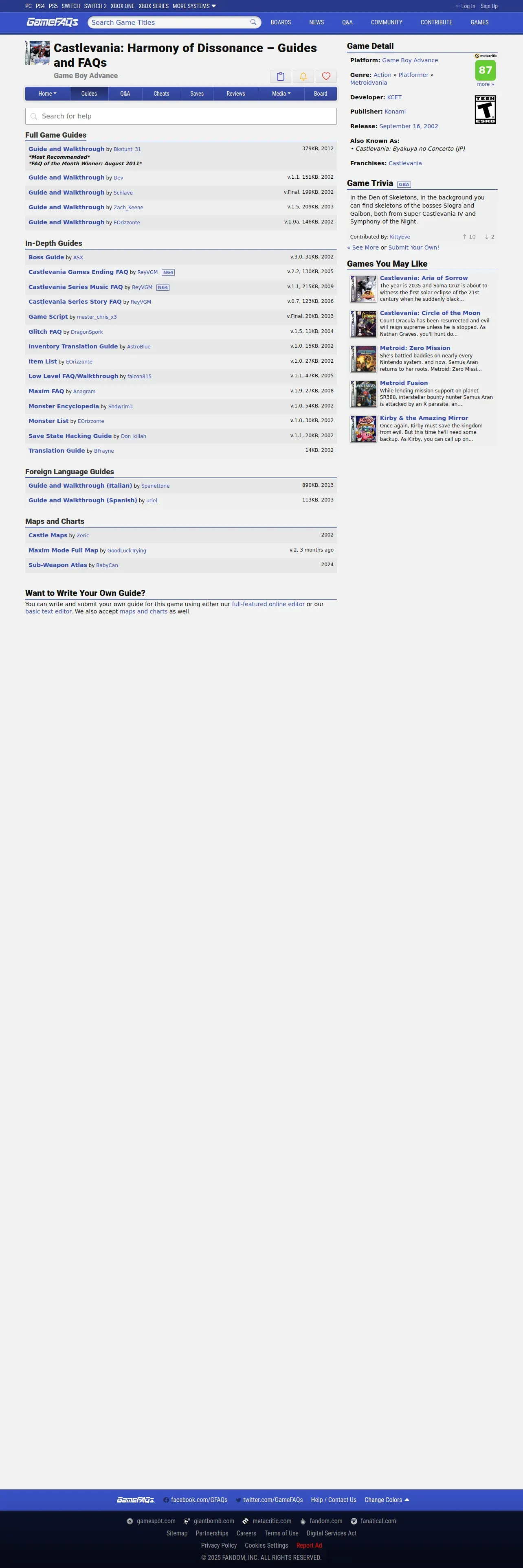 https://gamefaqs.gamespot.com:443/gba/554981-castlevania-harmony-of-dissonance/faqs