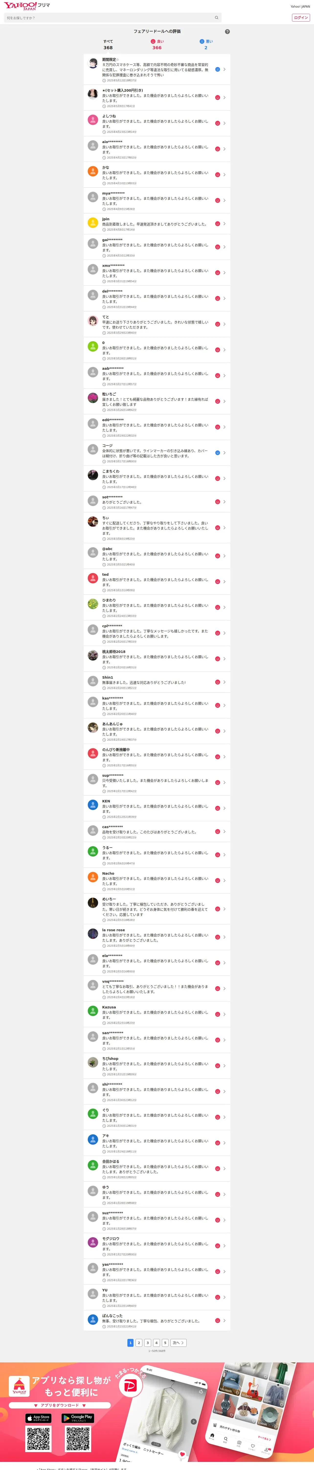 取得元URL: https://paypayfleamarket.yahoo.co.jp:443/user/p49573939/rating