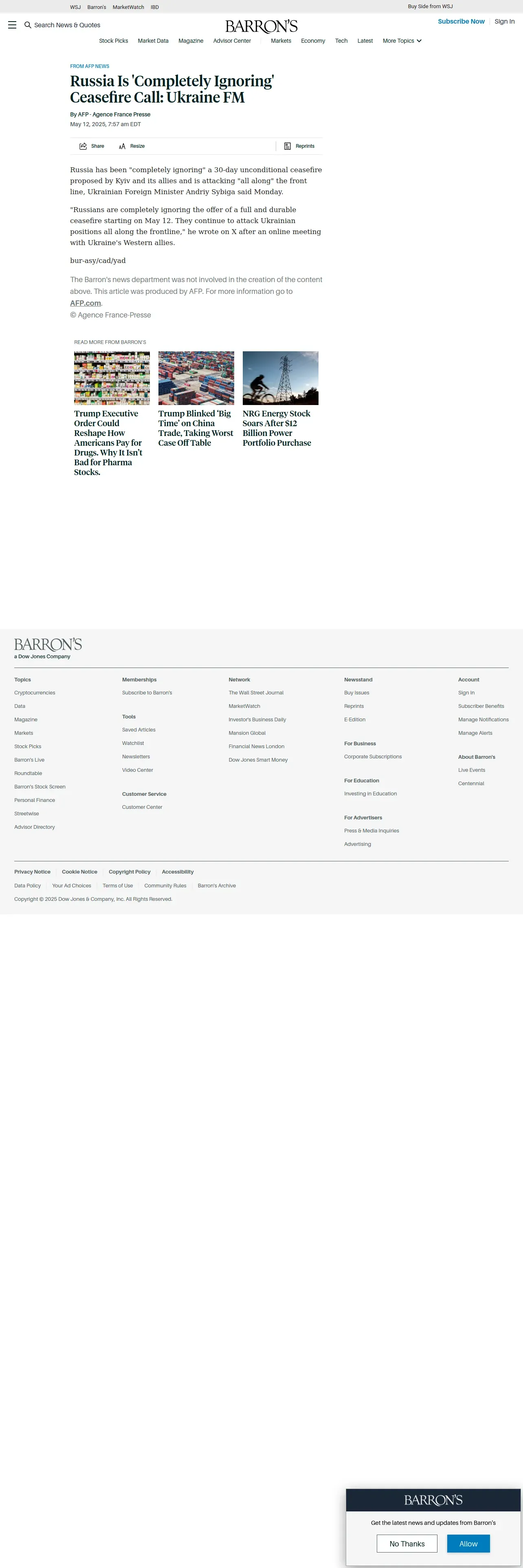 https://www.barrons.com:443/news/russia-is-completely-ignoring-ceasefire-call-ukraine-fm-2e3dc173