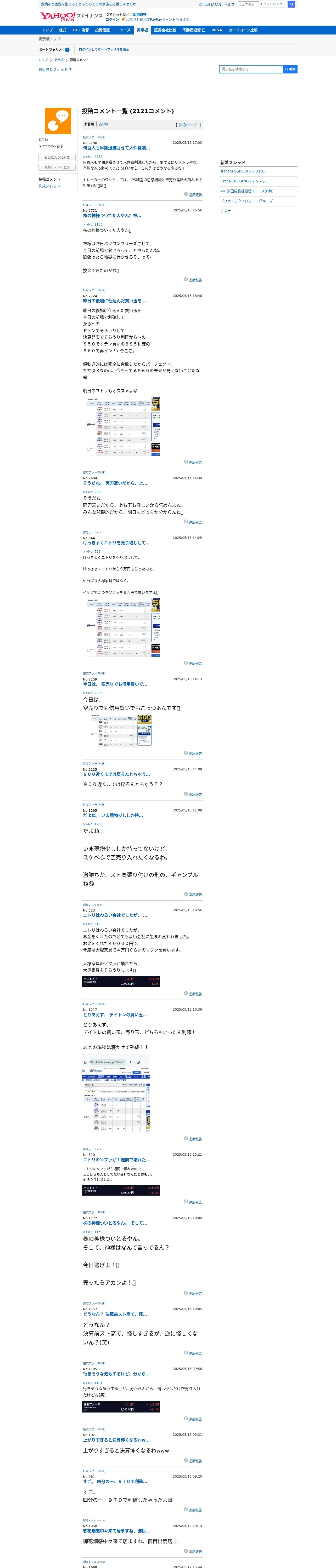 取得元URL: https://finance.yahoo.co.jp:443/cm/personal/history/comment?user=e03dd7606e150f9ffc5b30faa3b3e1eea62337456dffd58f67b04e06a78846d4