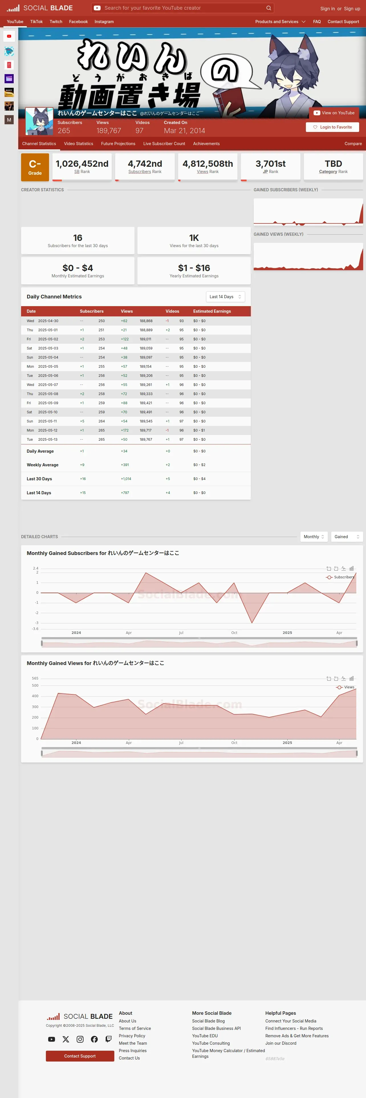 https://socialblade.com:443/youtube/channel/UCned4f0fev3KT_ZZhCGHHbg