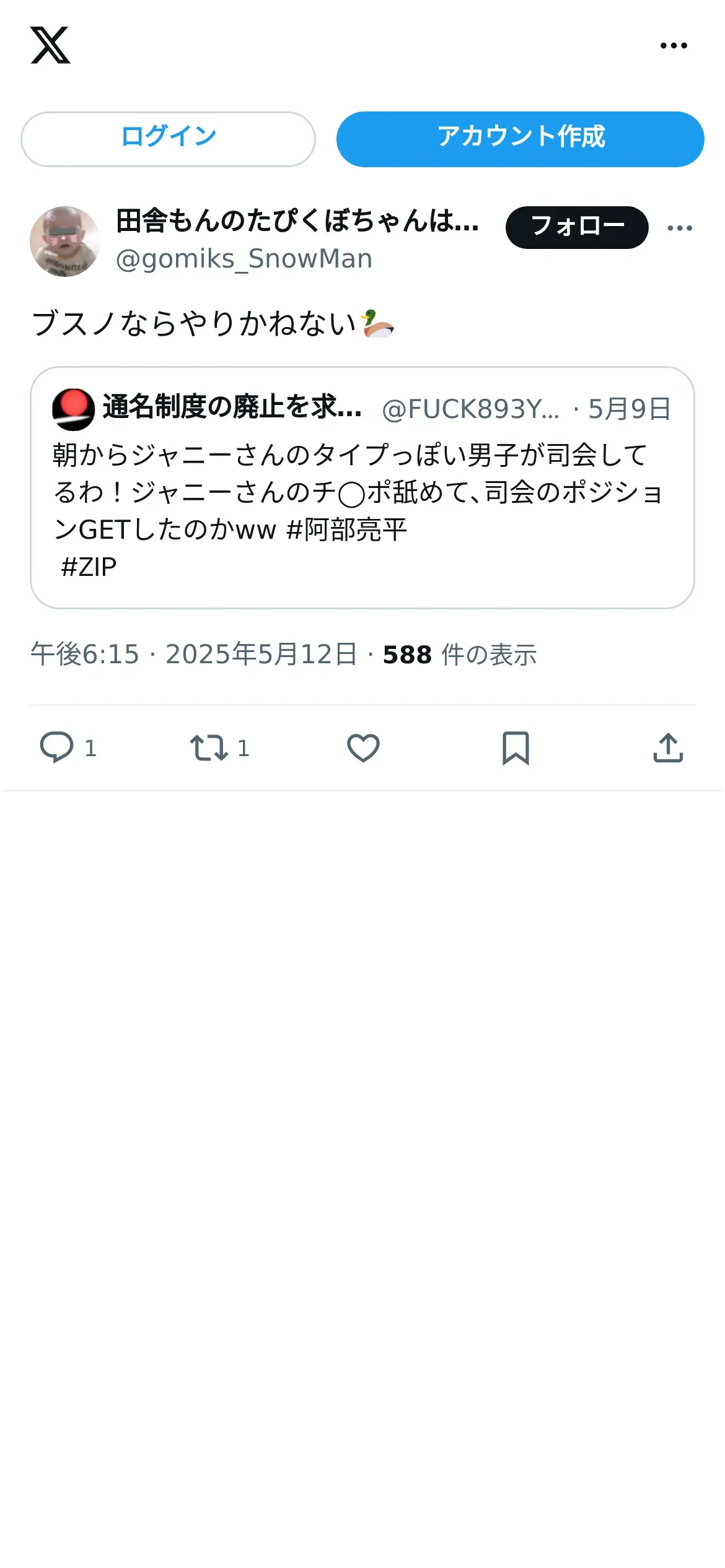 https://x.com:443/gomiks_SnowMan/status/1921856655714619798?t=3OIt5VKvqFlOJbNbDwHsuw&s=09