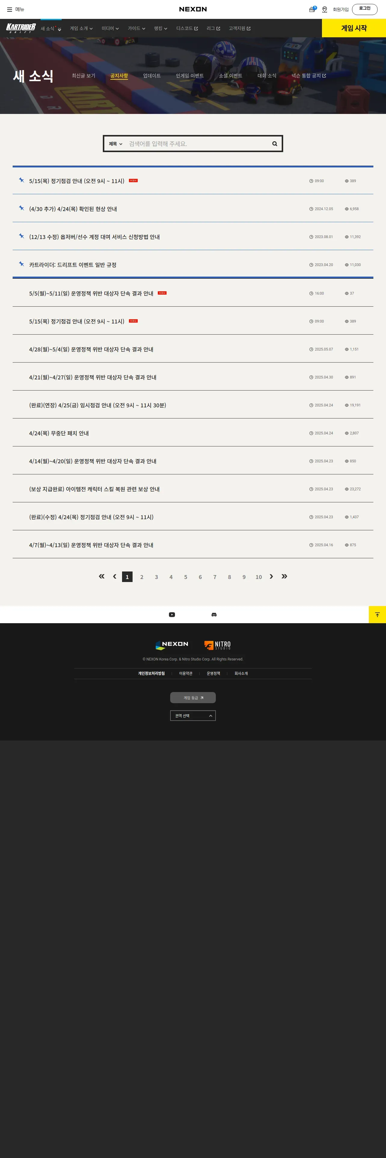 https://kartdrift.nexon.com:443/kartdrift/ko/news/announcement/list