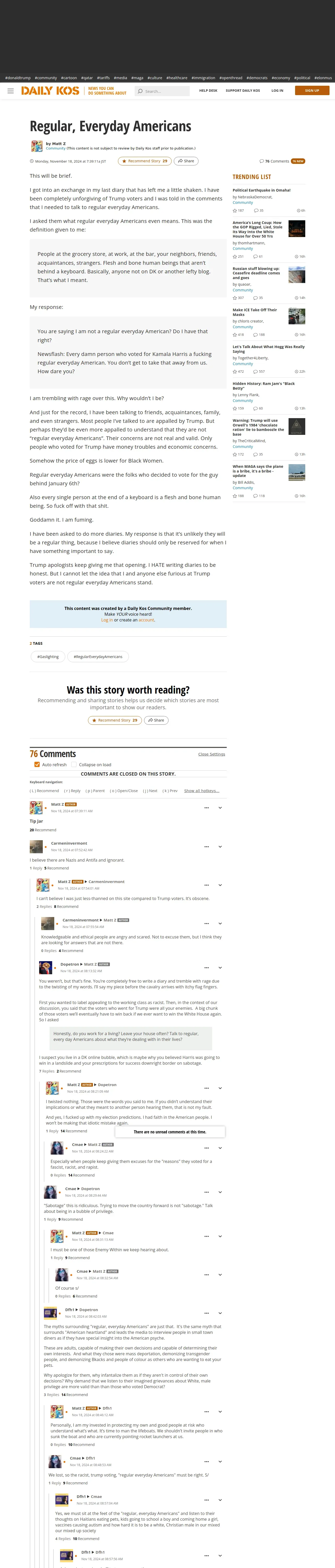 取得元URL: https://www.dailykos.com:443/stories/2024/11/17/2286919/-Regular-Everyday-Americans
