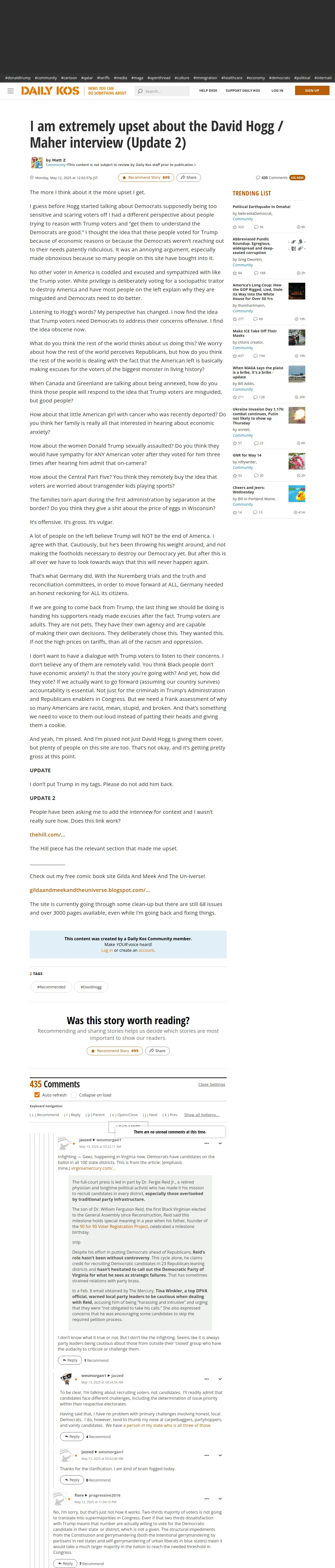 https://www.dailykos.com:443/stories/2025/5/11/2321793/-I-am-extremely-upset-about-the-David-Hogg-Maher-interview
