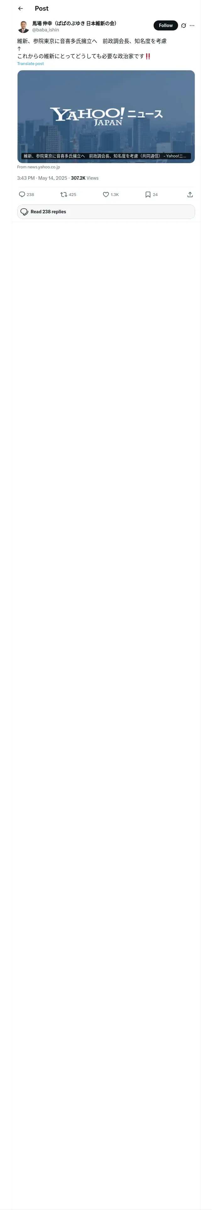 取得元URL: https://x.com:443/baba_ishin/status/1922543383652008175