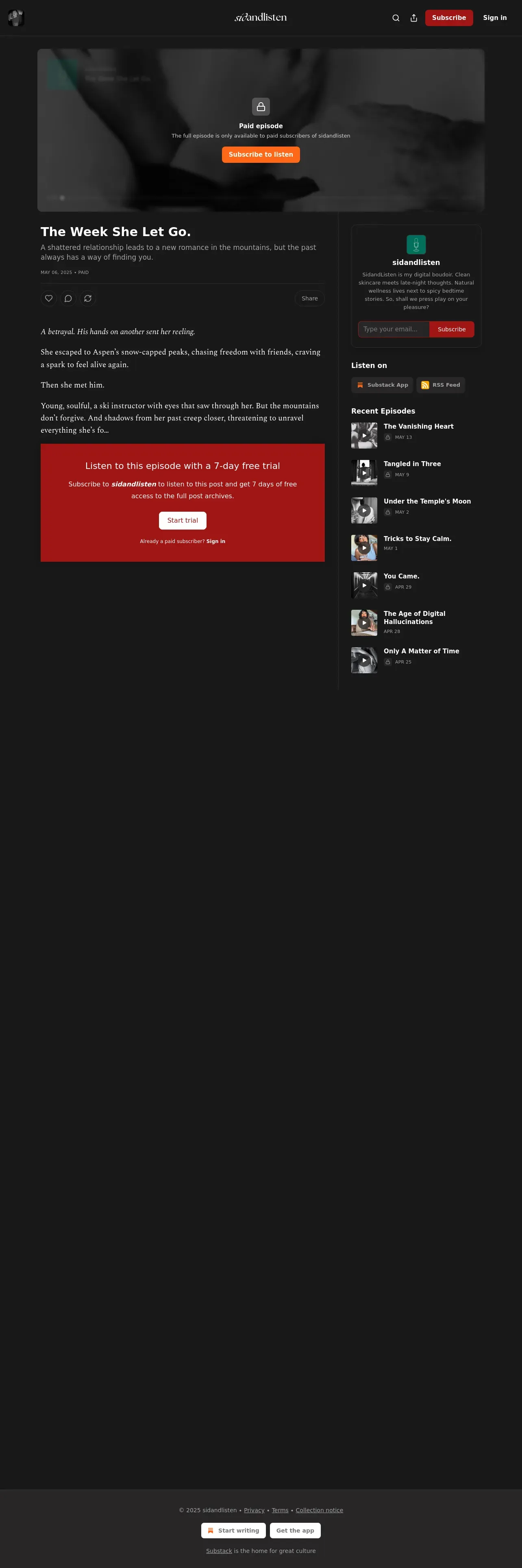https://www.sidandlisten.com:443/p/the-week-she-let-go