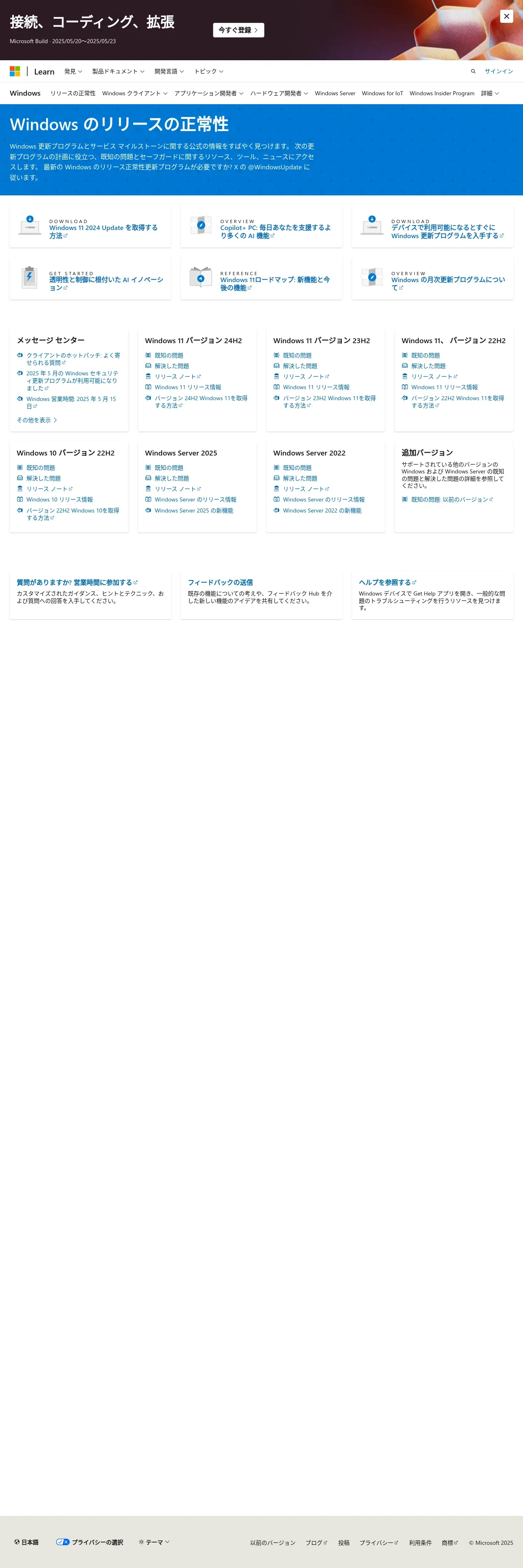 https://learn.microsoft.com:443/ja-jp/windows/release-health/