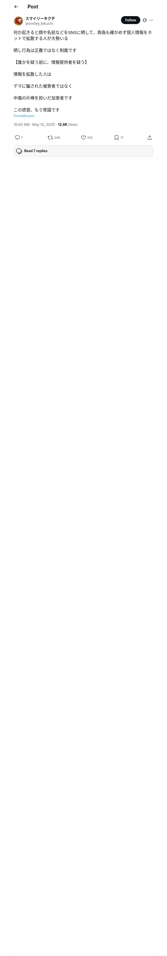 取得元URL: https://x.com:443/smiley_kikuchi/status/1922830554392649959