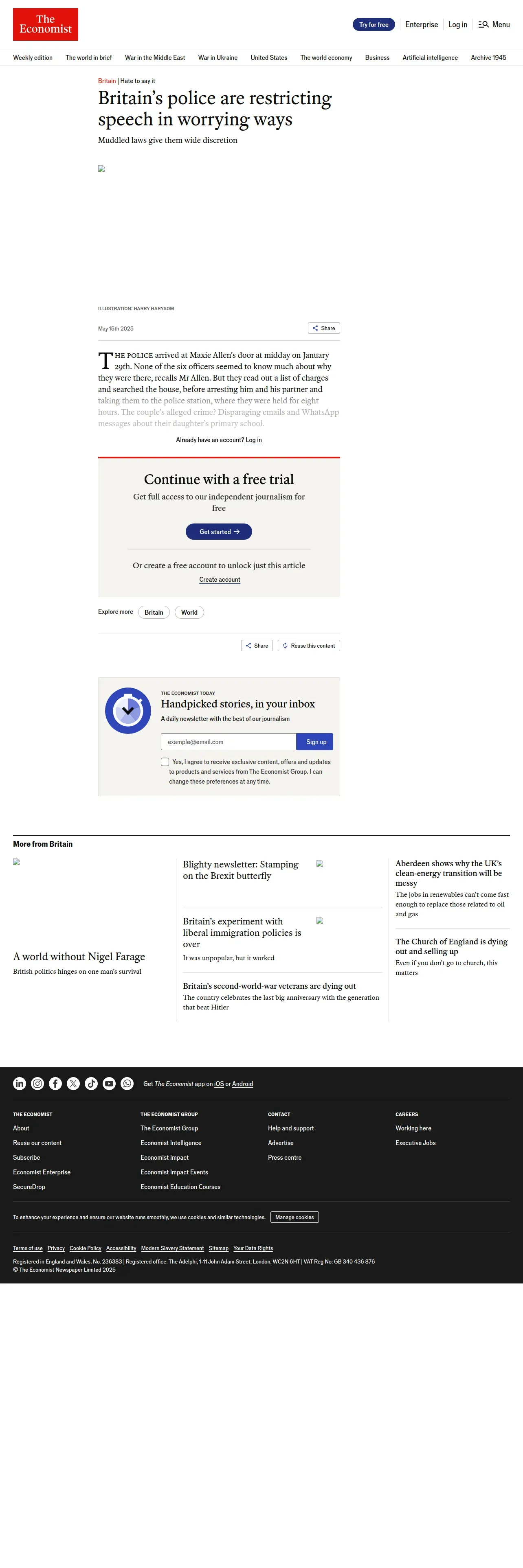取得元URL: https://www.economist.com:443/britain/2025/05/15/britains-police-are-restricting-speech-in-worrying-ways