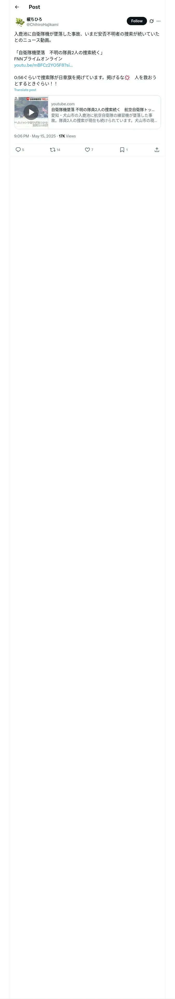 https://x.com:443/ChihiroHajikami/status/1922986880968098223