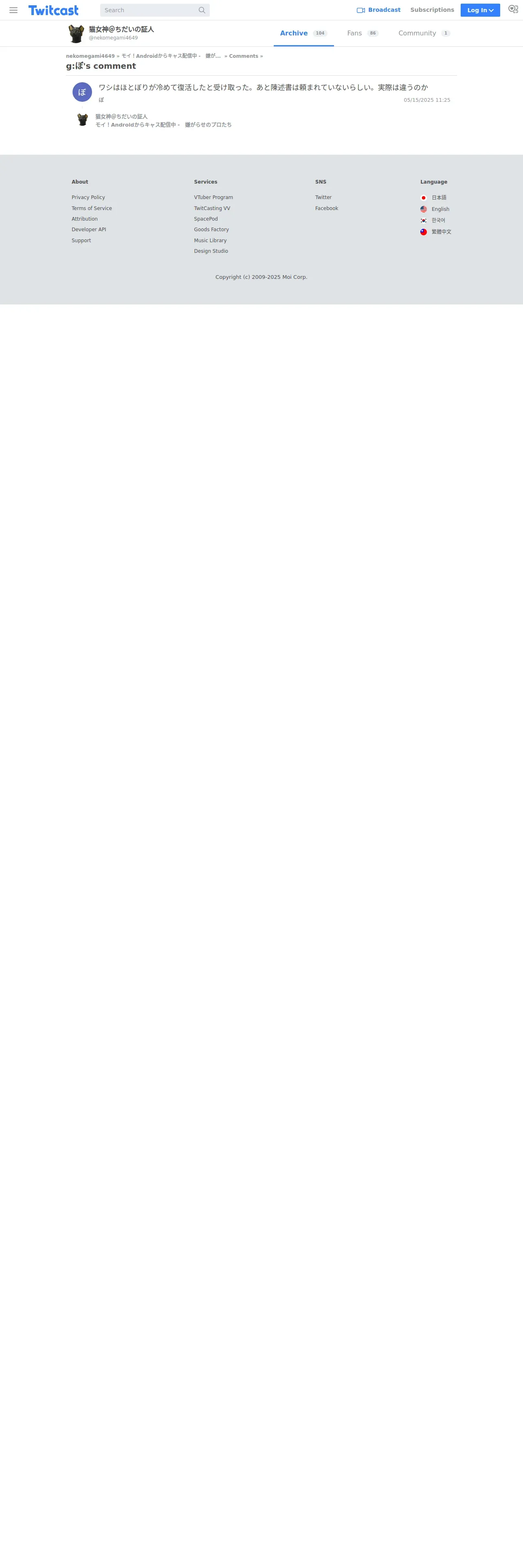 取得元URL: https://twitcasting.tv:443/nekomegami4649/comment/816310472-31512920290