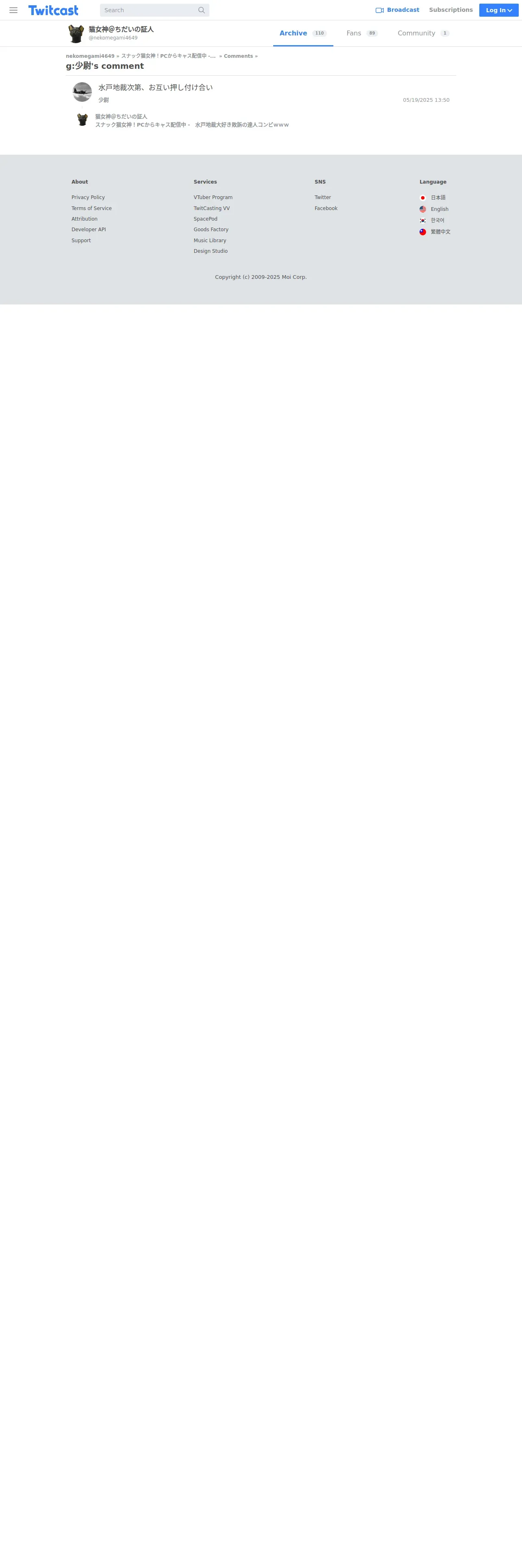 取得元URL: https://twitcasting.tv:443/nekomegami4649/comment/816559555-31536073302