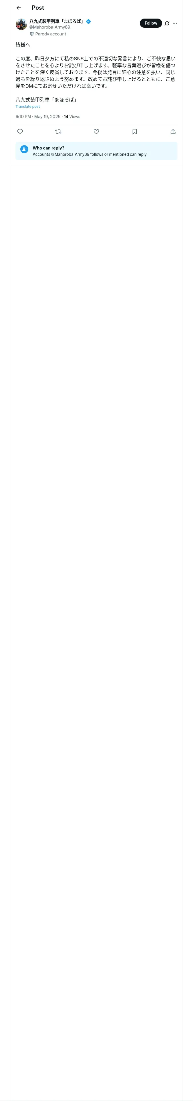 https://x.com:443/Mahoroba_Army89/status/1924392312194334809