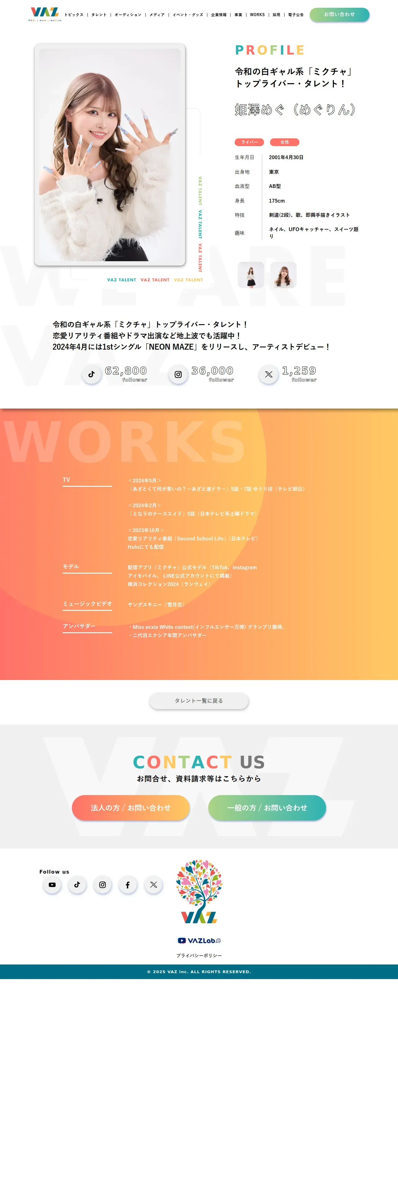 https://vaz.co.jp:443/talent/megu_himesawa/