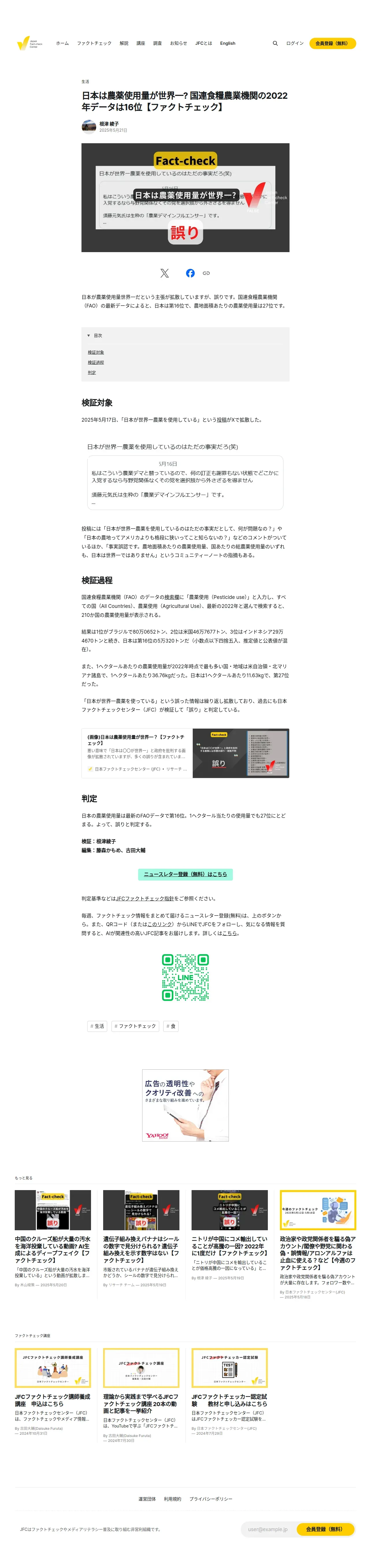 https://www.factcheckcenter.jp:443/fact-check/lifestyle/false-japan-use-of-pesticides-number1/