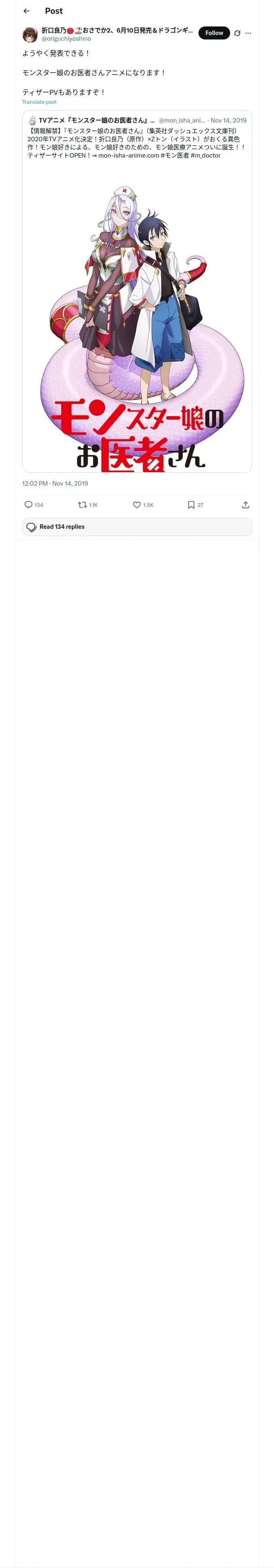 取得元URL: https://x.com:443/origuchiyoshino/status/1194812729258758144