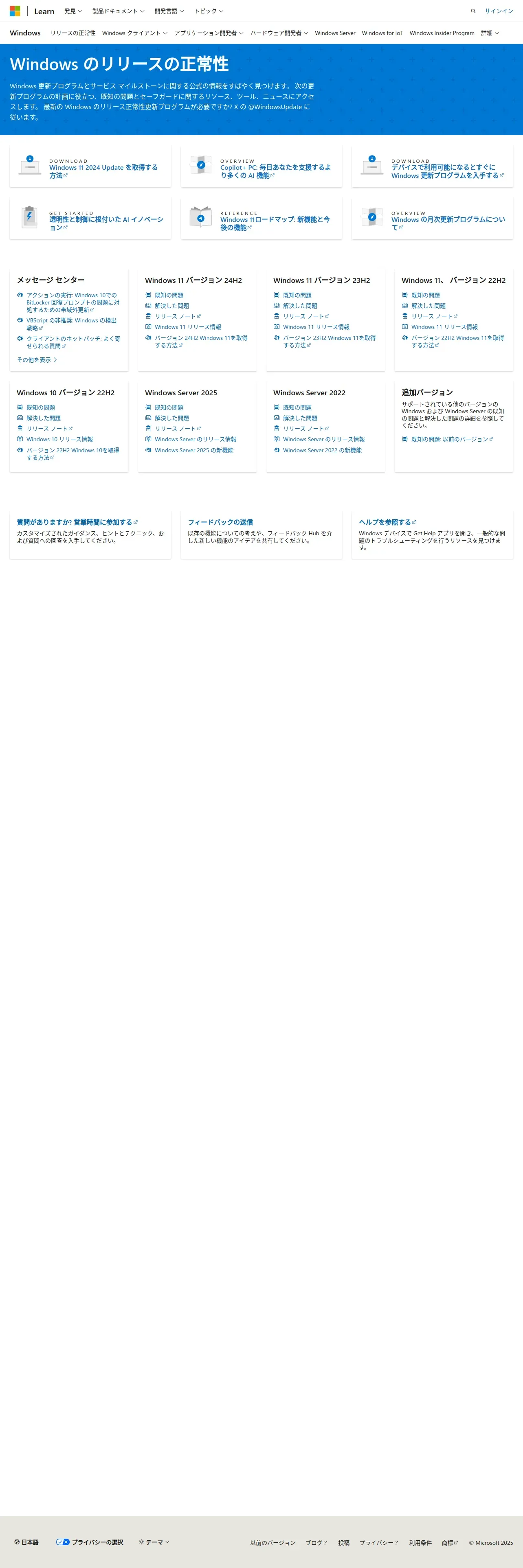 https://learn.microsoft.com:443/ja-jp/windows/release-health/