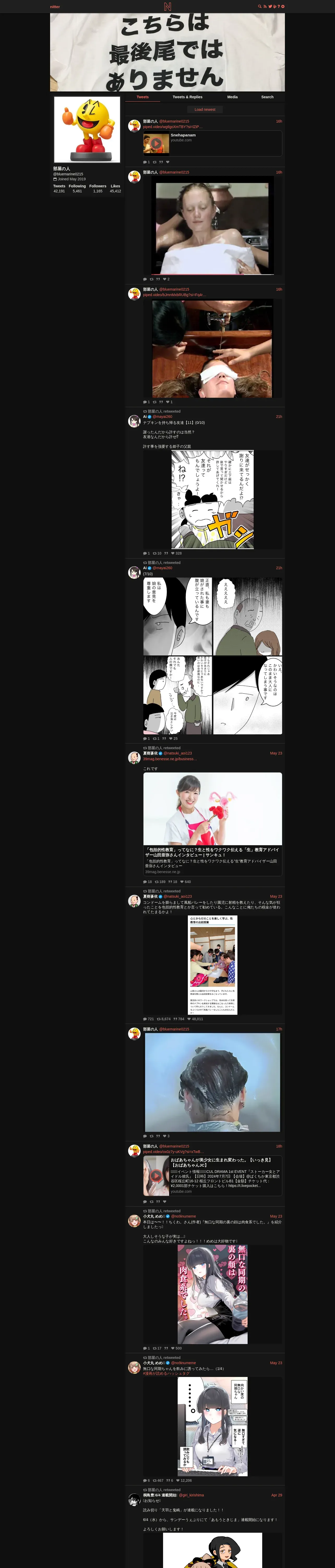 https://nitter.net:443/bluemarine0215?cursor=DAAHCgABGrwgz5E__-oLAAIAAAATMTkyNjIxMTYxOTcyMzM2NjY5MQgAAwAAAAIAAA