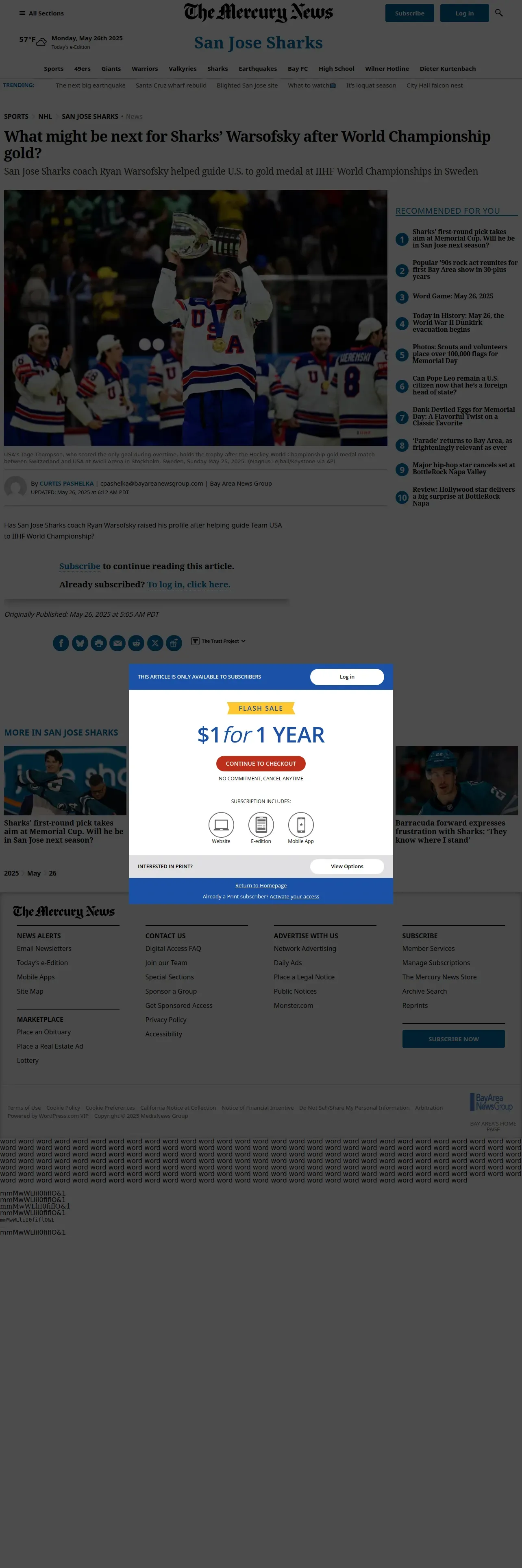 https://www.mercurynews.com:443/2025/05/26/san-jose-sharks-ryan-warsofsky-iihf-world-championship-team-usa-gold-medal-1933-olympics-mike-sullivan-milano-cortina/