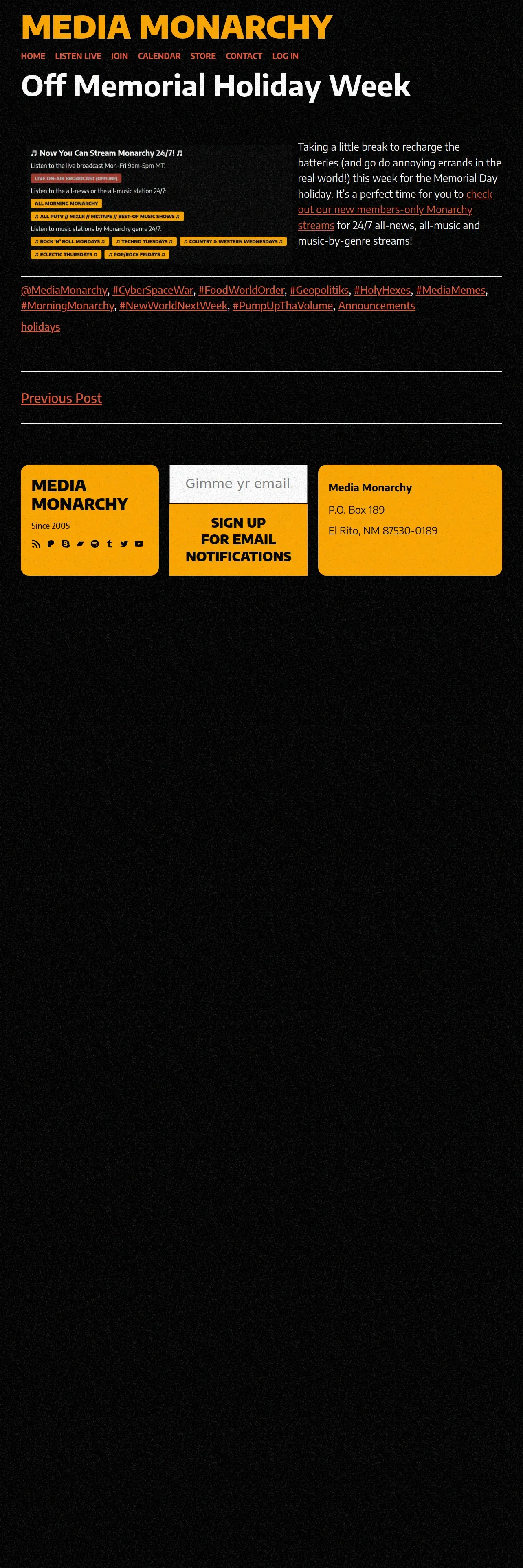 https://mediamonarchy.com:443/off-memorial-holiday-week/