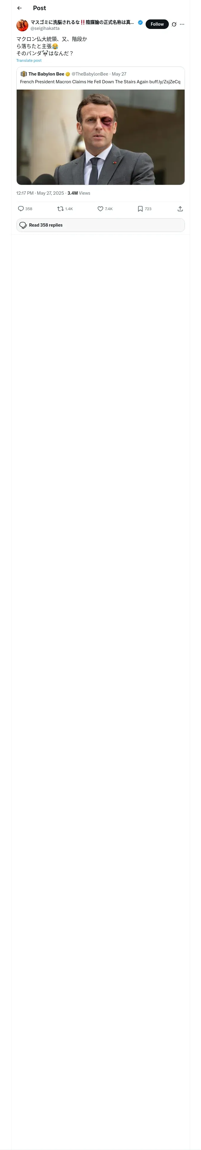 取得元URL: https://x.com:443/seigihakatta/status/1927202526765465604