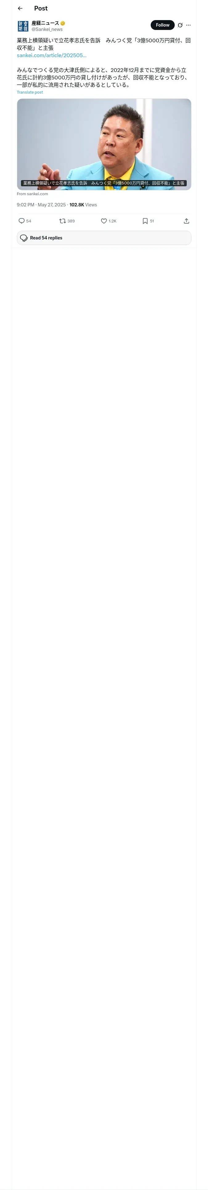 取得元URL: https://x.com:443/Sankei_news/status/1927334500523966498