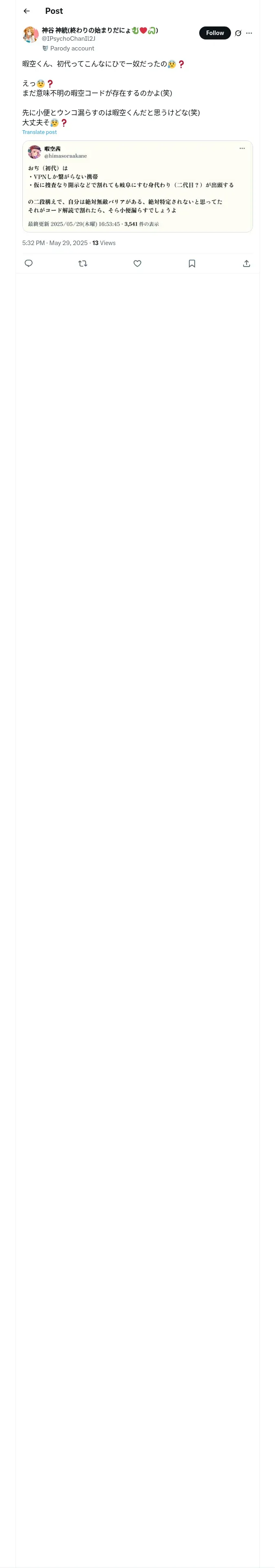 取得元URL: https://x.com:443/IPsychoChanIl2J/status/1928006604156268888