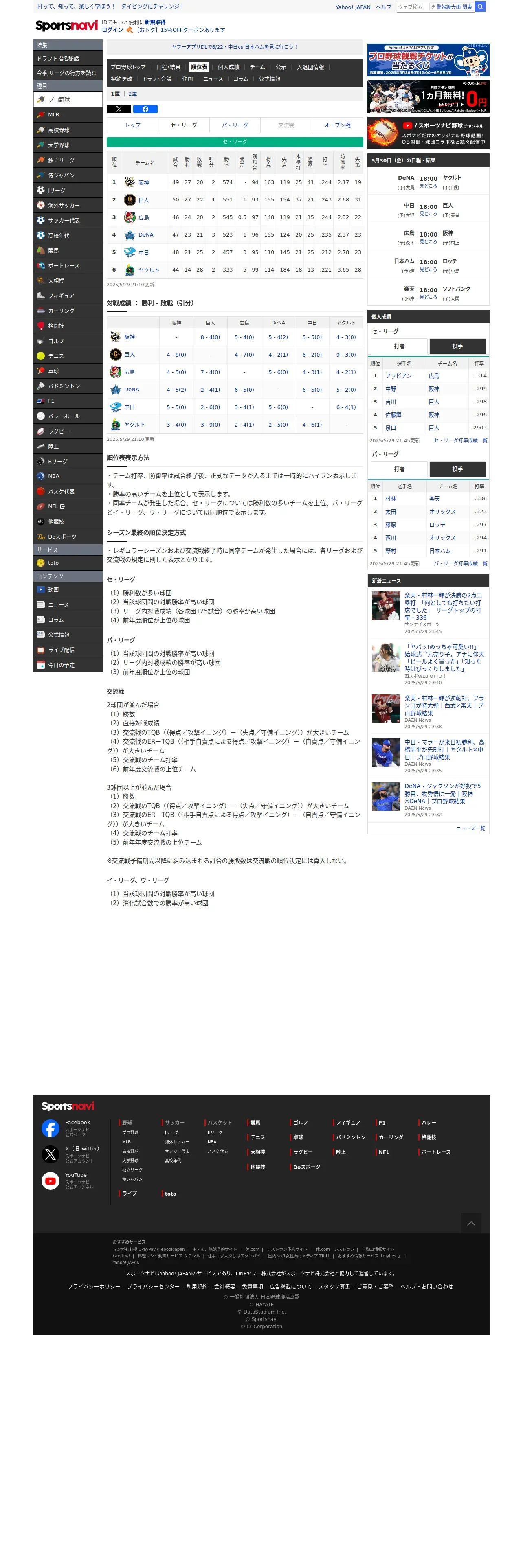 https://baseball.yahoo.co.jp:443/npb/standings/detail/1