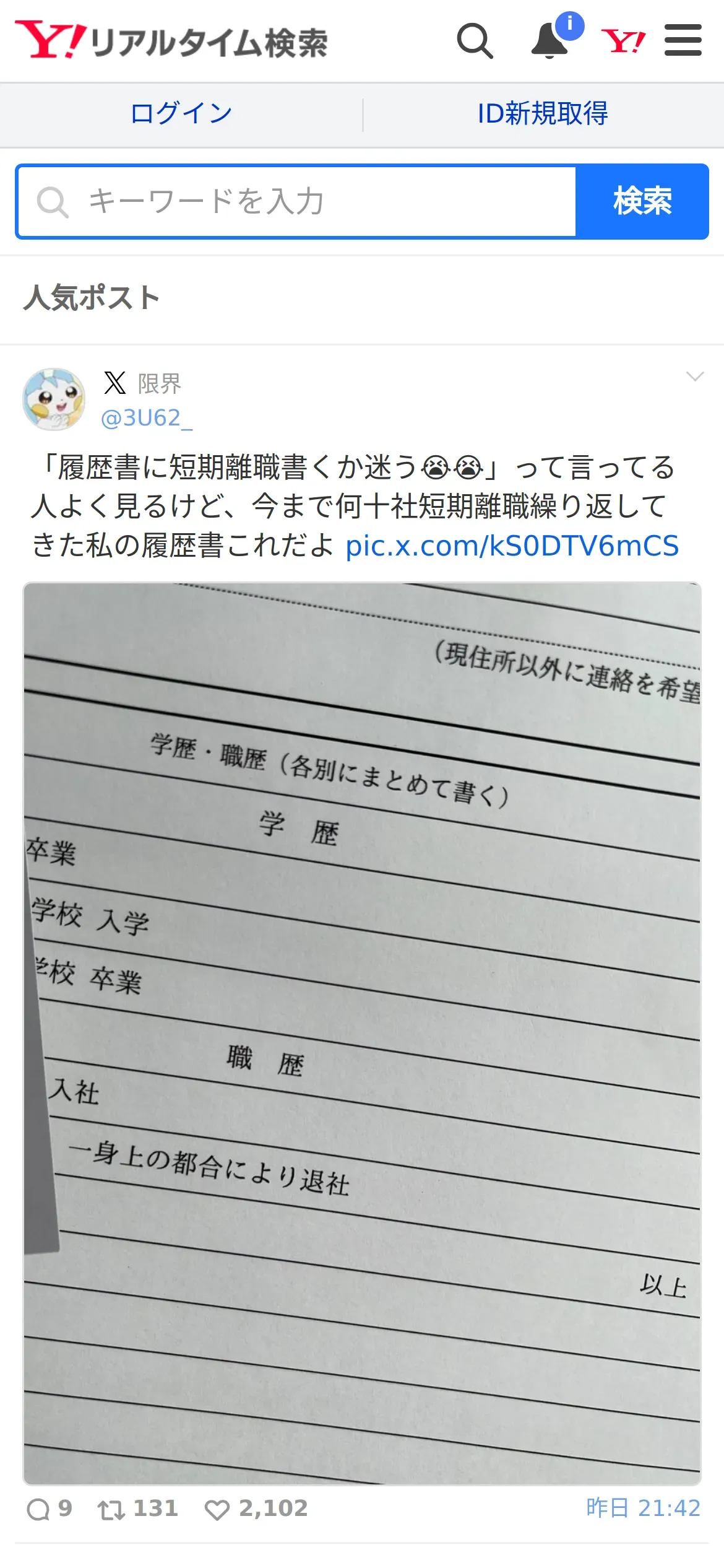 取得元URL: https://search.yahoo.co.jp:443/realtime/search/tweet/1928069355813618117?ifr=tl_tw