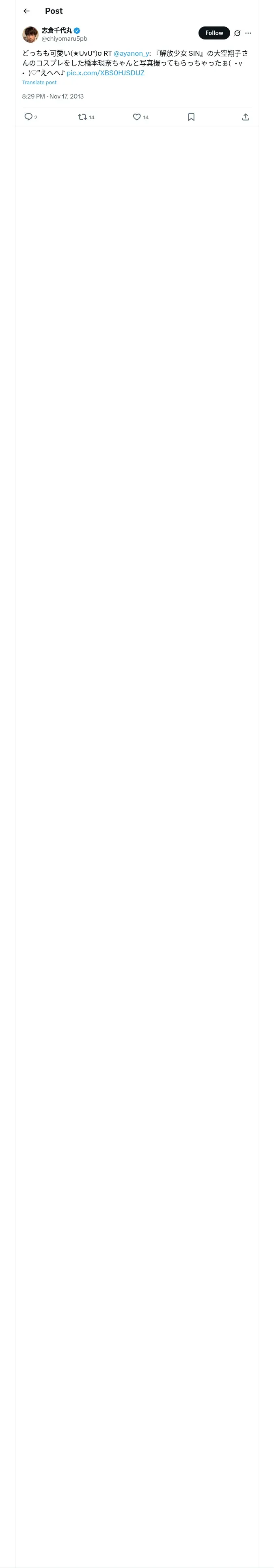 取得元URL: https://x.com:443/chiyomaru5pb/status/402035740991041536