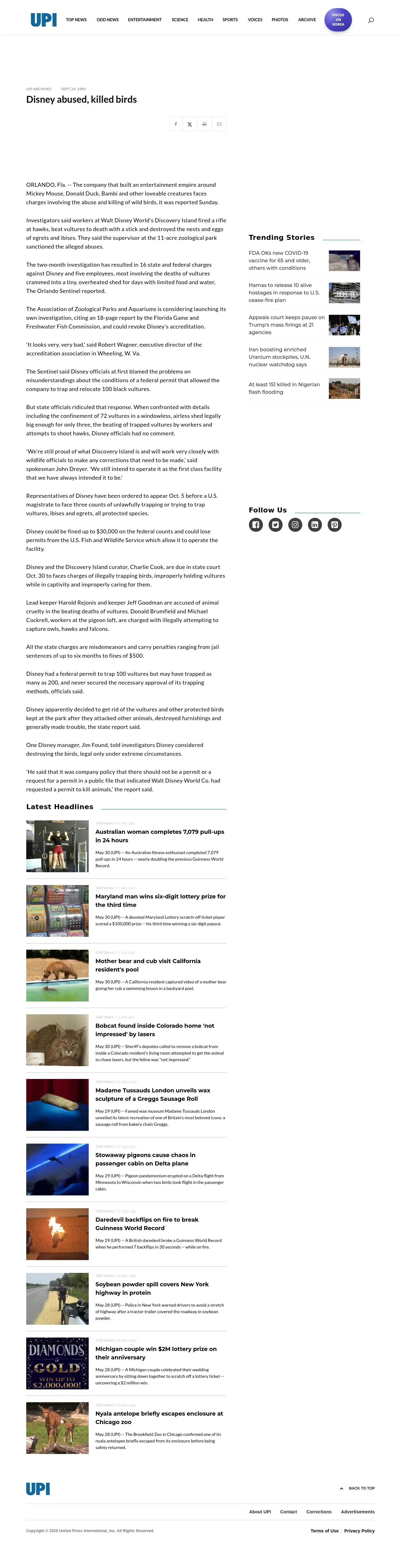 https://www.upi.com:443/Archives/1989/09/24/Disney-abused-killed-birds/6412622612800/
