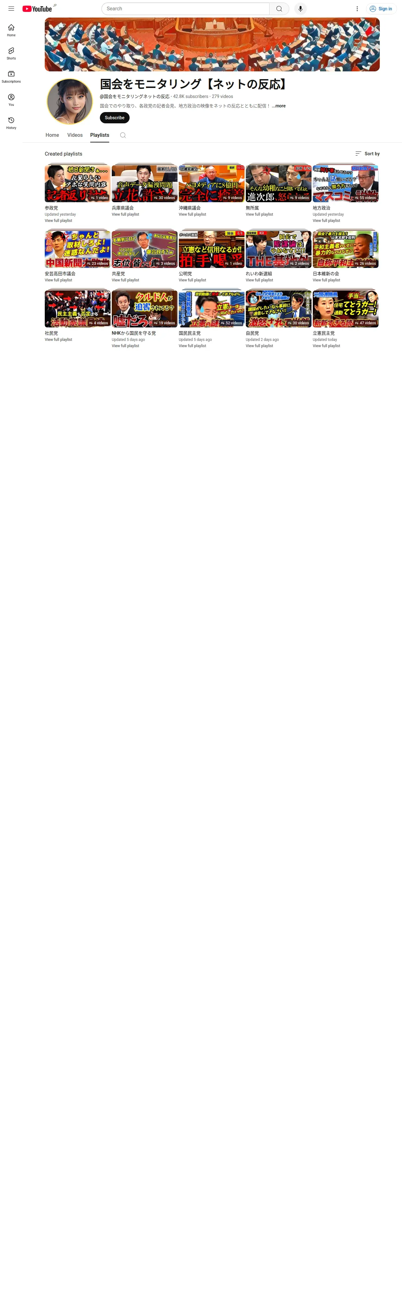 https://www.youtube.com:443/@%E5%9B%BD%E4%BC%9A%E3%82%92%E3%83%A2%E3%83%8B%E3%82%BF%E3%83%AA%E3%83%B3%E3%82%B0%E3%83%8D%E3%83%83%E3%83%88%E3%81%AE%E5%8F%8D%E5%BF%9C/playlists