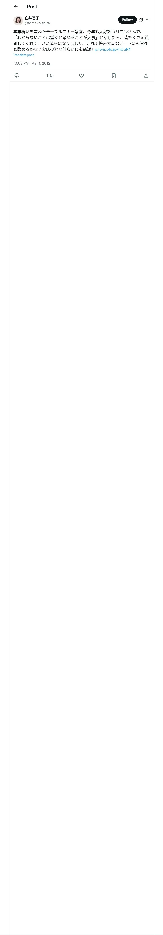 https://x.com:443/tomoko_shirai/status/175204734511235072