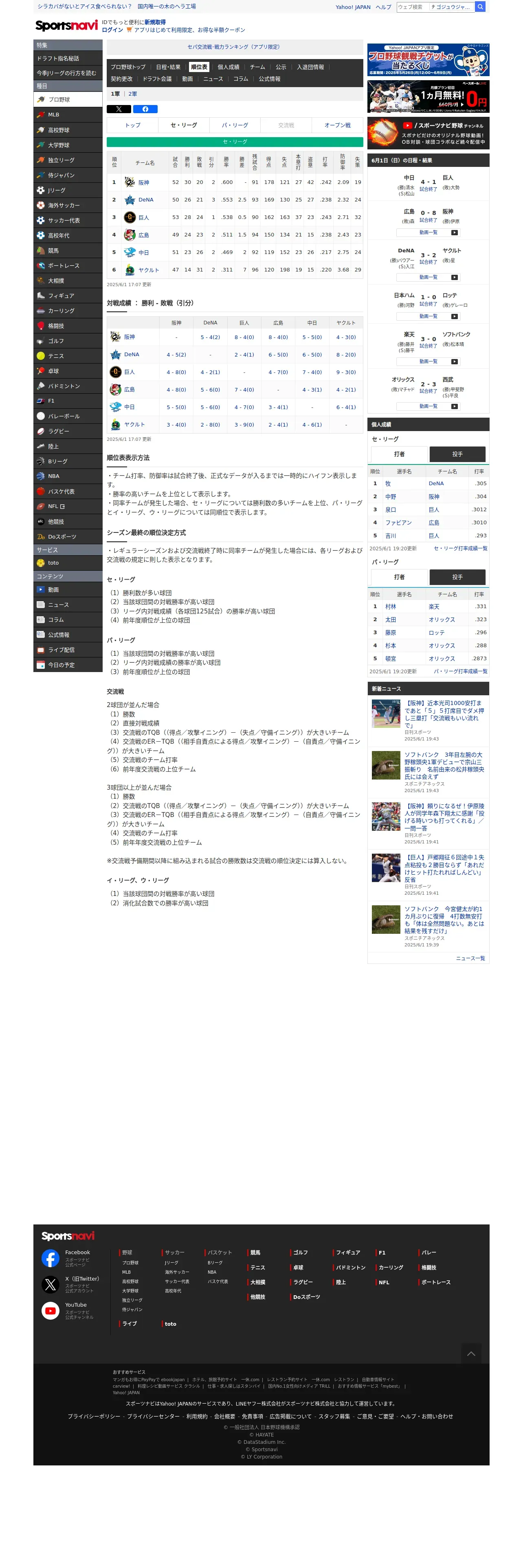 https://baseball.yahoo.co.jp:443/npb/standings/detail/1