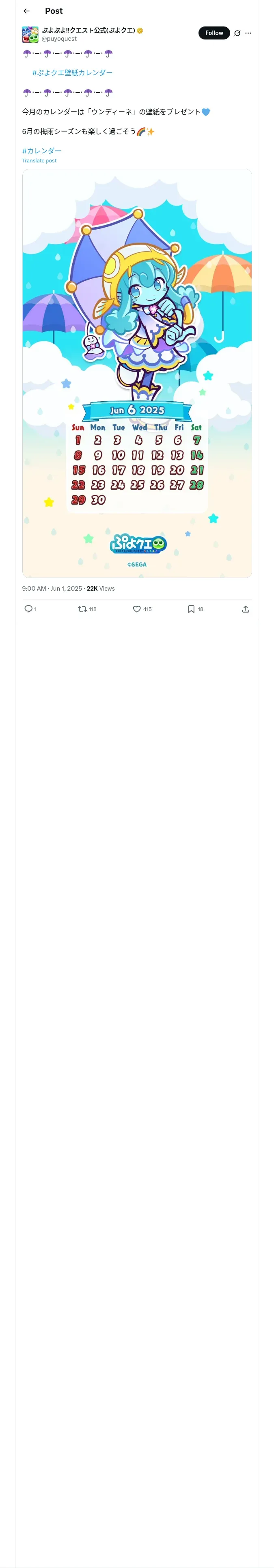 取得元URL: https://x.com:443/puyoquest/status/1928964711808131387