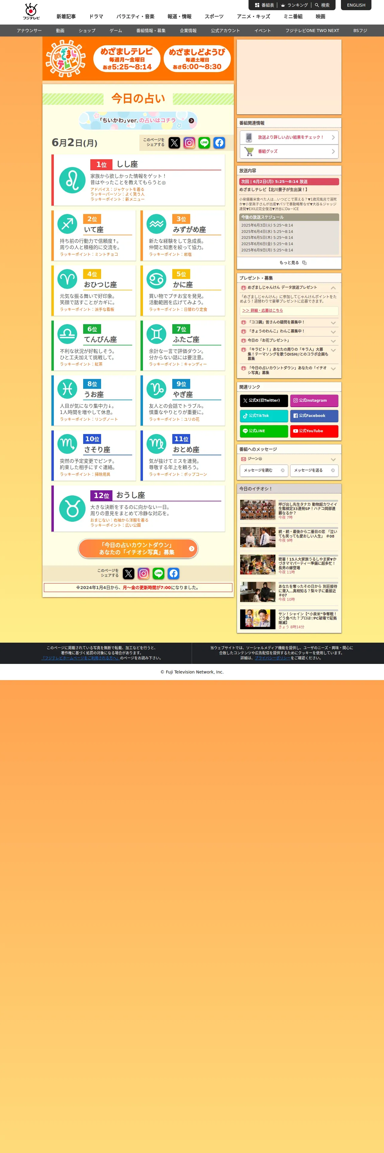 https://www.fujitv.co.jp:443/meza/uranai/index.html