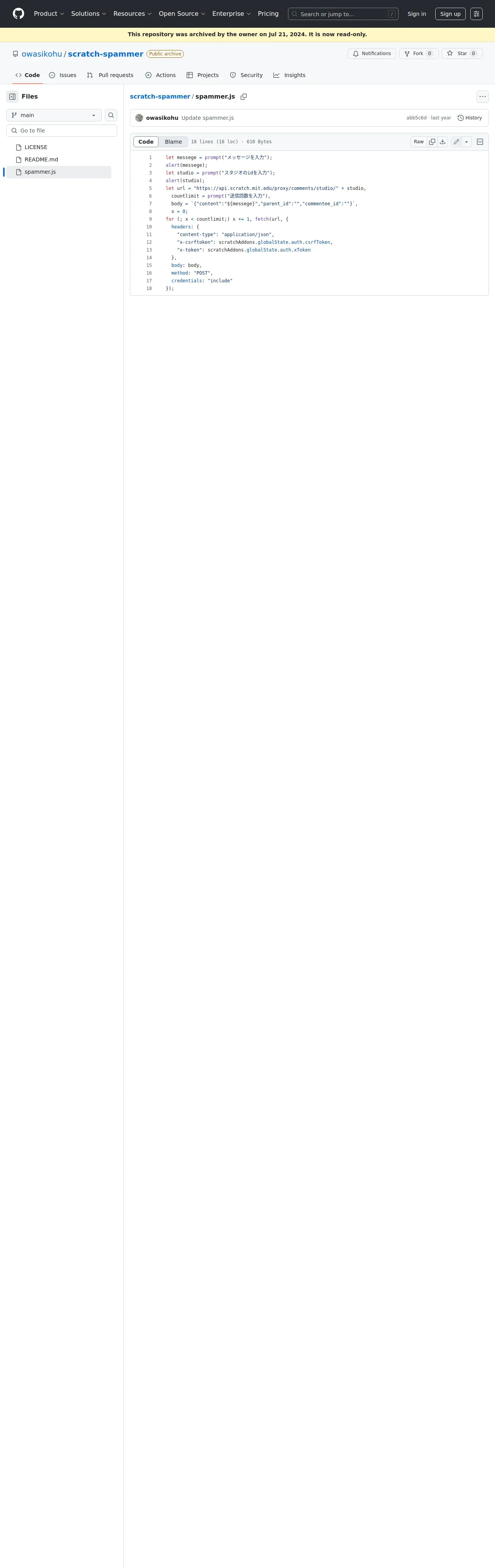 https://github.com:443/owasikohu/scratch-spammer/blob/main/spammer.js
