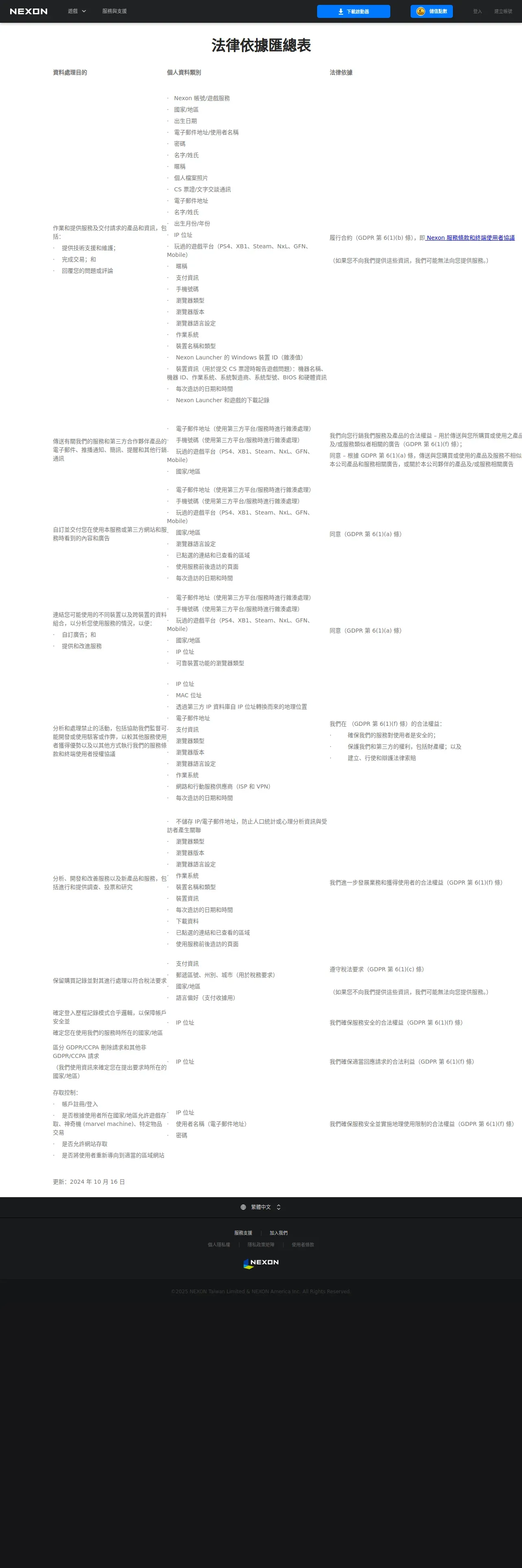 https://tw.nexon.com:443/main/zh/legal/privacy-policy-matrix