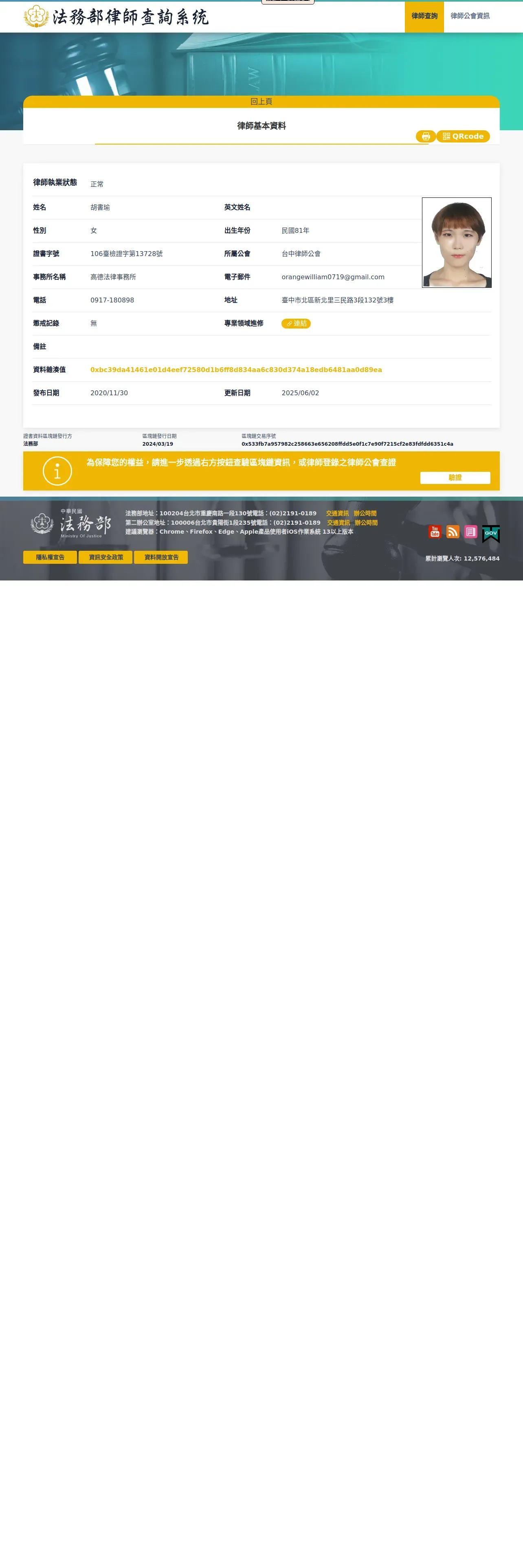 https://lawyerbc.moj.gov.tw:443/lawyer/0xbc39da41461e01d4eef72580d1b6ff8d834aa6c830d374a18edb6481aa0d89ea