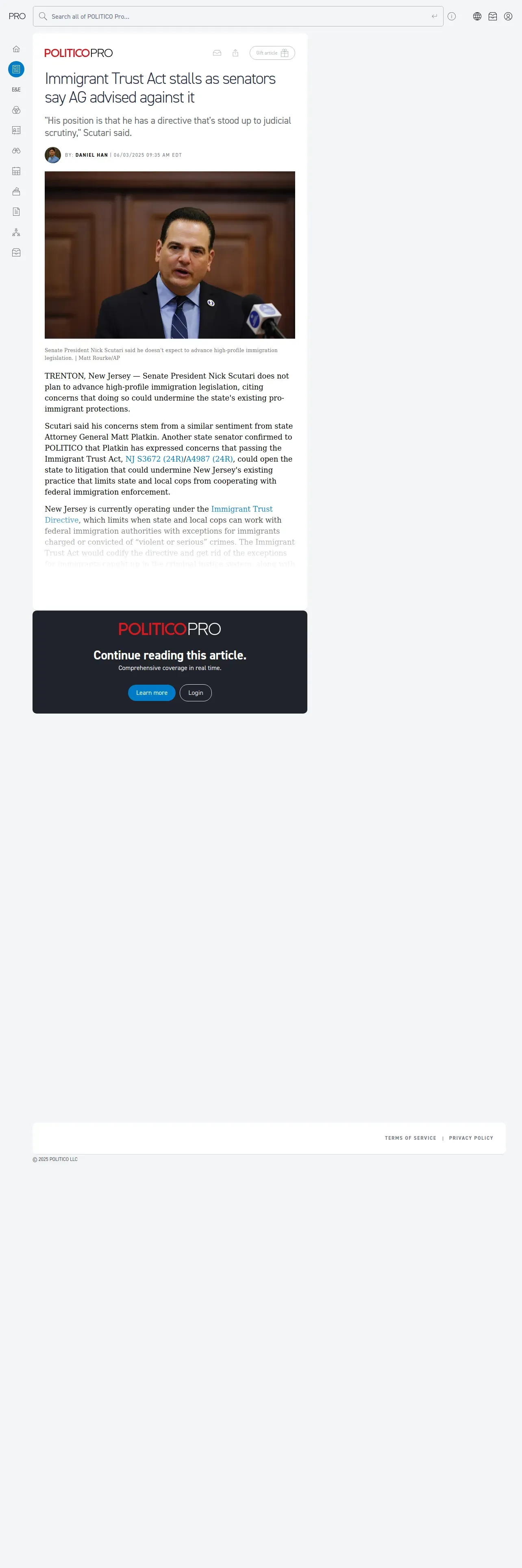 https://subscriber.politicopro.com:443/article/2025/06/immigrant-trust-act-stalls-as-senators-say-ag-advised-against-it-00381294?site=pro&prod=alert&prodname=alertmail&linktype=headline&source=email
