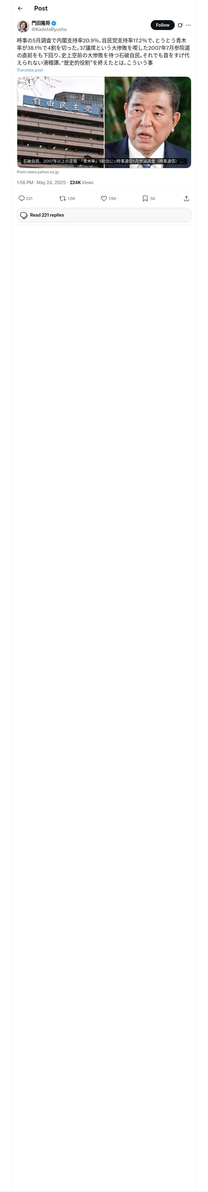 取得元URL: https://x.com:443/KadotaRyusho/status/1926140212838592809